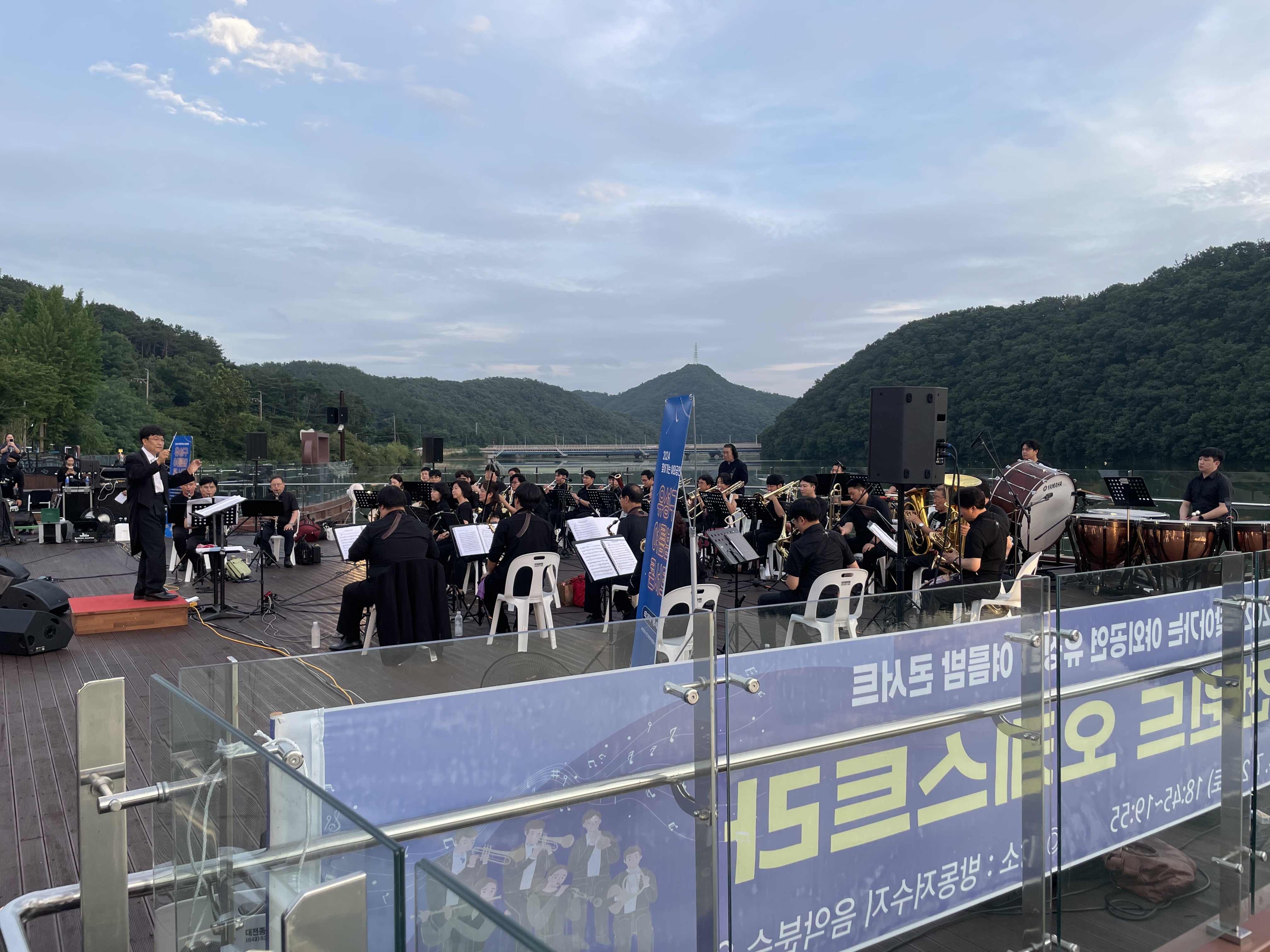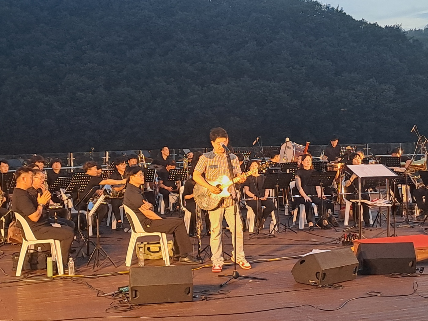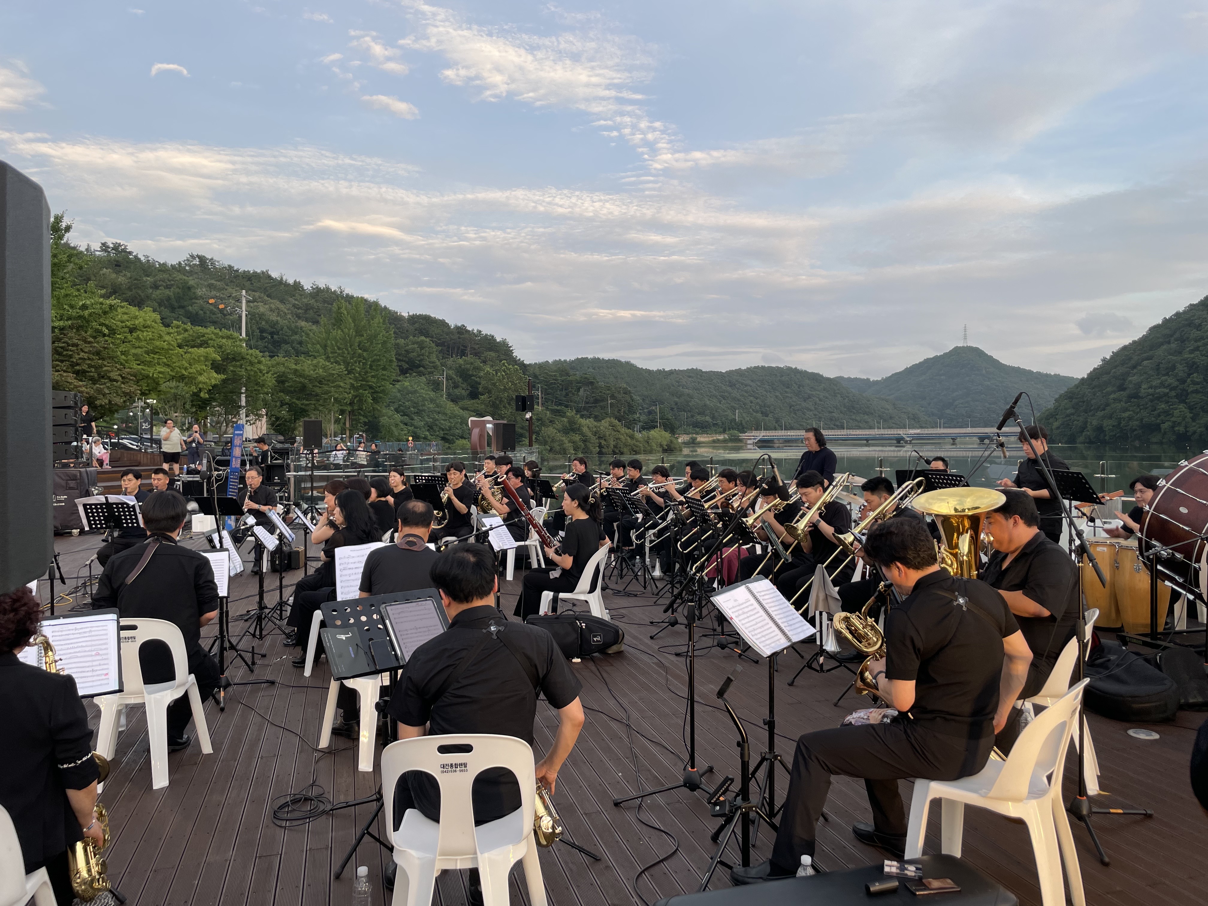 목관악기(플루트, 오보에, 클라리넷, 바순)와 금관악기(트럼펫, 트롬본, 튜바), 타악기(드럼, 심벌, 실로폰)로 구성된 윈드오케스트라의 웅장한 사운드는 야외 대형 음향을 통해 여름 밤 하늘 가득 울려 퍼졌습니다.